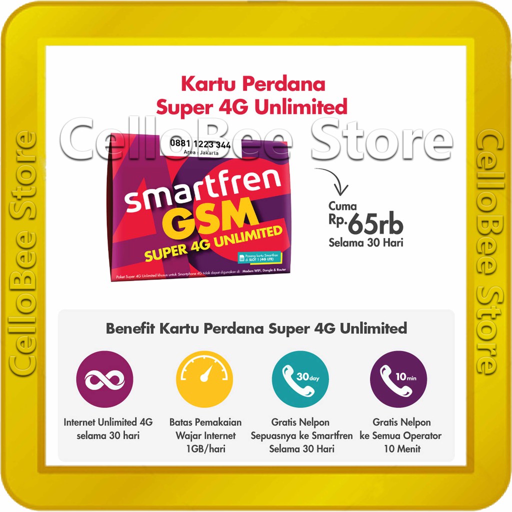Kartu Perdana Smartfren Super 4g Kuota Unlimited Internet Data