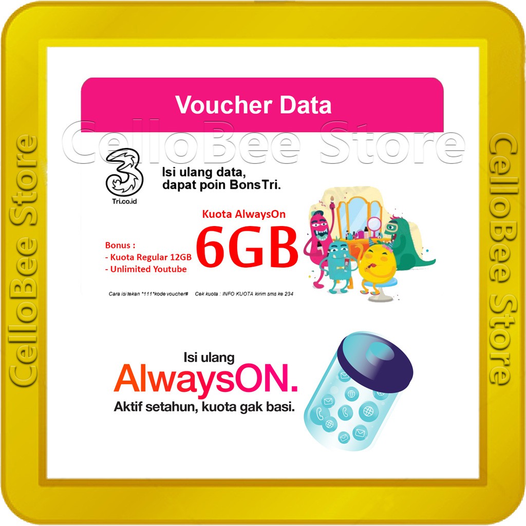 Voucher Data Tri Kuota Alwayson 6gb Bonus 12gb Unlimited Youtube